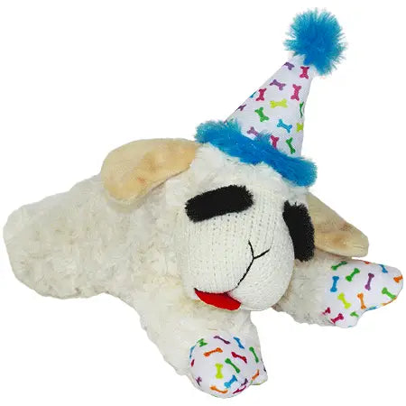 TOY | LAMB CHOP W/BIRTHDAY HAT 10.5" DOG TOY | BLUE