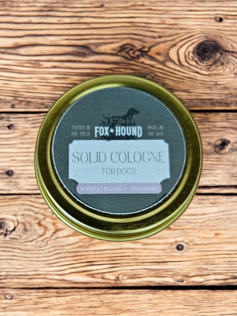 The solid cologne is offered in two different scents. White Rose and Jasmine is a fragrant blend, with notes of crisp peach blossom and lemon, as well as white rose and lavender over a steady amber base.